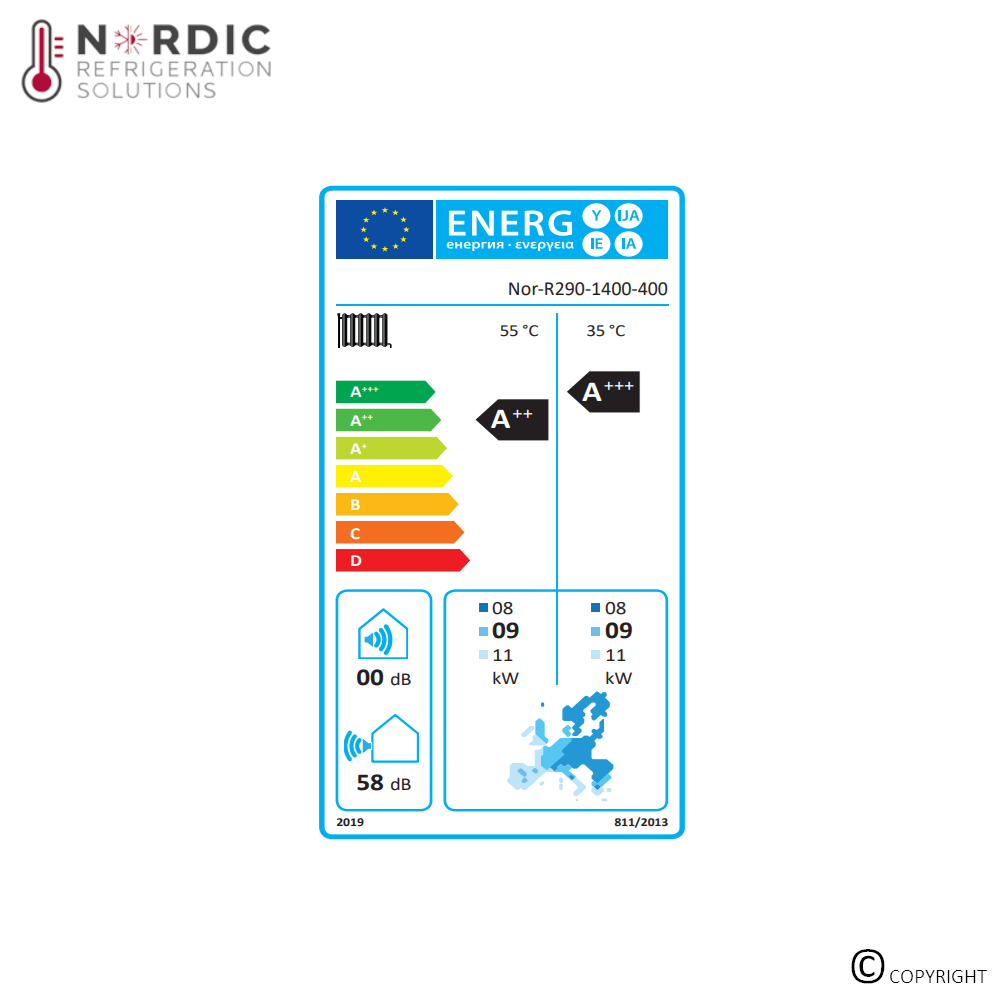 Denne propan varmepumpe har en meget høj SCOP-værdi på 4.92 og A+++ energimærkning til almindelig rumopvarmning (35 grader).